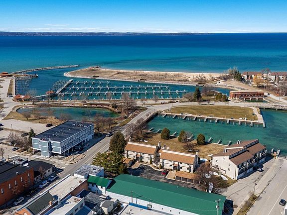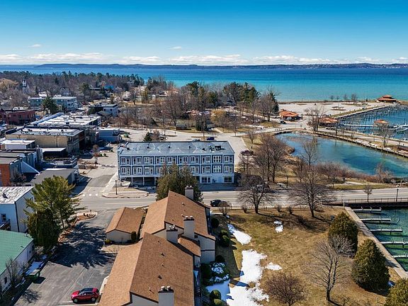 MULTIPLE OFFERS, HIGHEST AND BEST DUE 3.15 7 P.M. Live right downtown Elk Rapids while enjoying water views of Elk Lake marina and sunsets over Lake Michigan right from your back porch. This rarely available first floor corner unit is being sold turn key. Ready for you and your family to start making northern Michigan memories right away. Have your boat in your backyard in the marina and take a run through the chain of lakes up to Torch lake, or put it in just a few feet away into Lake Michigan and make your way to Traverse City. This sought after clean 2 bedroom 2 full bath condo even includes a 1 car garage and additional storage space. Additional company wanting to join in, the brand new boutique hotel right accross the street that is opening in summer of 2024 will keep everyone close. With low HOA dues at only $200 per month, forget the worries of mowing and maintenance. Everything you can think of is just a few feet away. Beaches, bars, restaurants, movie theater, coffee bars, tennis courts, pickleball courts, playground, brewery, marina, weekly farmers market. And just 20 min from Traverse City. No STR.
