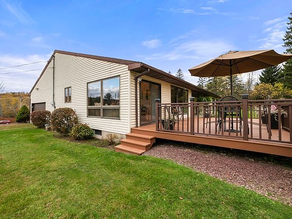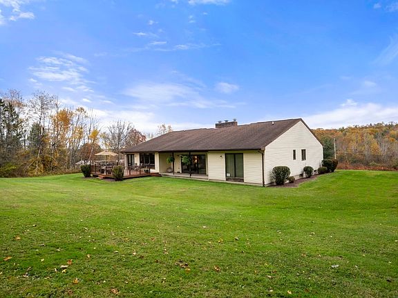 WELCOME to this unique three bedroom, two and a half bath contemporary ranch with 2394 sq. on 2.65 acres which offers tranquility and peaceful privacy. The large great room with a sloping ceiling to 17' features a beautiful brick fireplace that towers through the center of the home. This spacious ranch with an abundance of windows makes you feel like you're outside with nature when you're inside. The full basement could be used as additional space for entertaining or can be used for storage. The house itself has an abundance of closets and storage available. The home is situated so that sunrises and sunsets are part of the natural beauty of the outside space, as well. Enjoy the deck with friends and family. SUNY Broome is nearby, along with the convenience of all essential amenities like grocery stores, restaurants, doctors' offices, churches, gas stations, etc. Possible turnkey package available. Call your real estate salesperson today to schedule a showing.