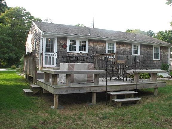For more information on this property, contact William Raveis Real Estate, Mortgage & Insurance at 1-888-699-8876 or contact@raveis.com. This ranch is in move in condition. On first floor you have a living room with fireplace, kitchen with granite counter tops, gas 6 burner Frigidaire range, Sansung refrigerator, Sansung Microwave, Kenmore dishwasher and has eat in area ,3 bedrooms,1 bath, and enclosed sun porch. The basement is finished into one large open area and full bath. Two level deck 12 X 12 and 15 x 11 are ready for all of your cookouts and family gatherings. Enclosed outside shower. Quiet residential area and the bike path is located at the end of Duck Pond which will take you all the way to Orleans.