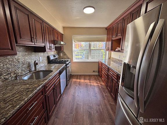 Newly renovated beautiful and spacious two-bedroom home featuring one full bath and one half bath. East-facing and in mint condition, just minutes from the Edison train station. Enjoy Brazilian Cherry laminate flooring on both levels, an eat-in kitchen with newer refrigerator, stainless steel dishwasher, and range. The expanded full bath offers a unique touch, and the oversized deck overlooks a serene, park-like yard. Equipped with a high-efficiency Trane HVAC system.
