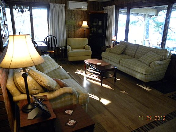 Open House Sat. July 7th Sat. 1-3pm. Spectacular sunset views straight up Brandy Pond from this cute cottage. Sandy beach & great landscaping. Newly renovated bathrooms & wood floors. 2 car garage w/ an additional finished room above. 30% expansion is still available. Best spot on the pond!