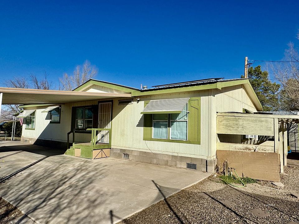 Affordable 3 Bedrooms/2 Bathrooms Manufactured Home!: Welcome to this charming 3-bedroom, 2-bath manufactured home in Safford, AZ! The split-floor concept offers privacy, with the primary suite on one side and secondary bedrooms on the other. The open living area features a cozy fireplace, perfect for relaxing evenings, and ceiling fans throughout ensure year-round comfort.Freshly painted with retextured ceilings, the home boasts a modern and inviting feel. The kitchen includes updated appliances, ample pantry space, and a versatile nook for a breakfast table or workspace. Outside, enjoy two covered parking spaces, a spacious storage shed, and garden beds ready for your favorite plants. The solar system adds energy savings to this well-maintained home. With charm, comfort, and convenience, this move-in-ready gem won't last long. Schedule your showing today!