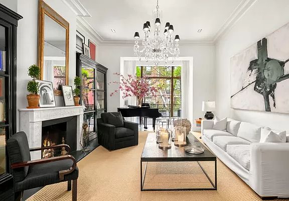 Stunning Townhouse off Park Avenue 115 East 38th Street is a stunning, 6-story, fully renovated elevator townhouse located in the Murray Hill Historic District just off Park Avenue. Behind its French Second Empire facade (c.1864) is over 6,300 square feet of gorgeous, lovingly maintained interiors and luxurious finishes amid graceful proportions, 12-foot ceilings and abundant light. Meticulously renovated in 2016 with 6 wood-burning fireplaces and state-of-the-art mechanical systems, this townhouse's beauty lies in its striking architectural details: a stunning brass raised-paneled elevator door; a sinuous ebonized elliptical stair spiraling up 5 stories; French doors from the living room opening up onto a balcony overlooking the beautifully landscaped garden. The ground floor's fully open plan features a gracious and professionally equipped kitchen with eat-in banquette, a formal dining room and a media/family room that opens out into the lush garden with ample room for outdoor entertaining. A grand parlor floor features a south-facing library adjacent to the elegant entry gallery and a grand living room with a fireplace, a carved marble mantlepiece and a wall of French doors opening onto a balcony overlooking the garden. The entire third floor makes up the luxurious primary bedroom suite and includes a dressing room with extensive custom built-in closet millwork and a large, lavish marble-clad bathroom with two sinks, a floating bathtub and steam shower. Bathroom fixtures throughout the house are in a classic antiqued brass from Waterworks. Three additional floors include 4 bedrooms all with en-suite bathrooms, a laundry room, and a sixth floor library with a fireplace and wet bar opening out onto the large terrace perfect for twilight entertaining. Distinguished by an open and airy floor plan, with 3 distinct outdoor spaces totalling over 1,000 SF and stunning views of the Empire State & Chrysler Buildings, 115 east 38th Street unifies under one roof the best of classic townhouse living with modern amenities and systems. 115 East 38th Street is located on a beautiful townhouse block just off Park Avenue and close to Bryant Park, Scandinavia House, The Morgan Library, and Grand Central Station.
