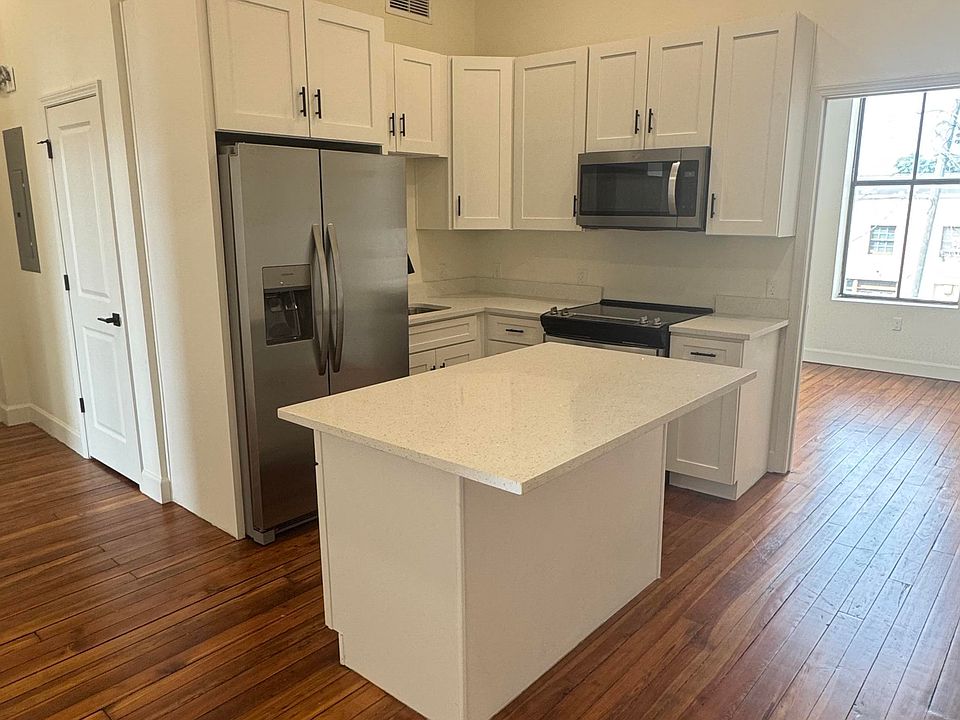 Beautifully renovated upstairs 3 bedroom apartment in the historic district of downtown Starke. Original hardwood floors and soaring ceilings higlight its historic charm while creating a spacious and airy feel. Walking distance to restaurants and shopping.