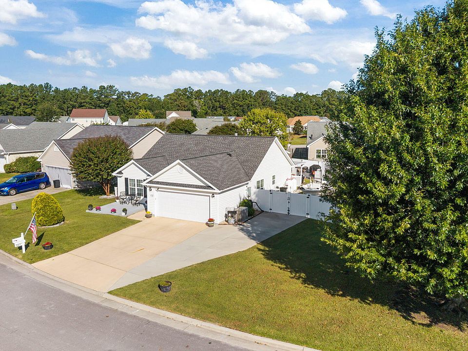 This well maintained property offers a blend of comfort, efficiency, and outdoor utility. The interior boasts a bright, open feel with vaulted ceilings in the main areas and a deep mahogany stained vinyl plank flooring along with a newly carpeted primary bedroom. The primary bdrm also has ample space with a walk-in closet and double-sink primary bath. Key features include a cozy gas fireplace, an electric stove, and a functional laundry/pantry. The home is equipped for peace of mind with a whole-house generator that self tests weekly, a specially paved area for the boat, fenced for privacy with more paved parking to the side of the 2 car garage for the truck. The garage is large enough for two more vehicles! Additionally, the outdoor space is exceptionally useful featuring an xtra large covered patio that leads out to another deck and a 16X20 workshop with A/C and electrical panel and a 8X10 garden shed. All with gutters and rain barrels to catch the water for gardens, but not to worry because the property has an automated sprinkler system.