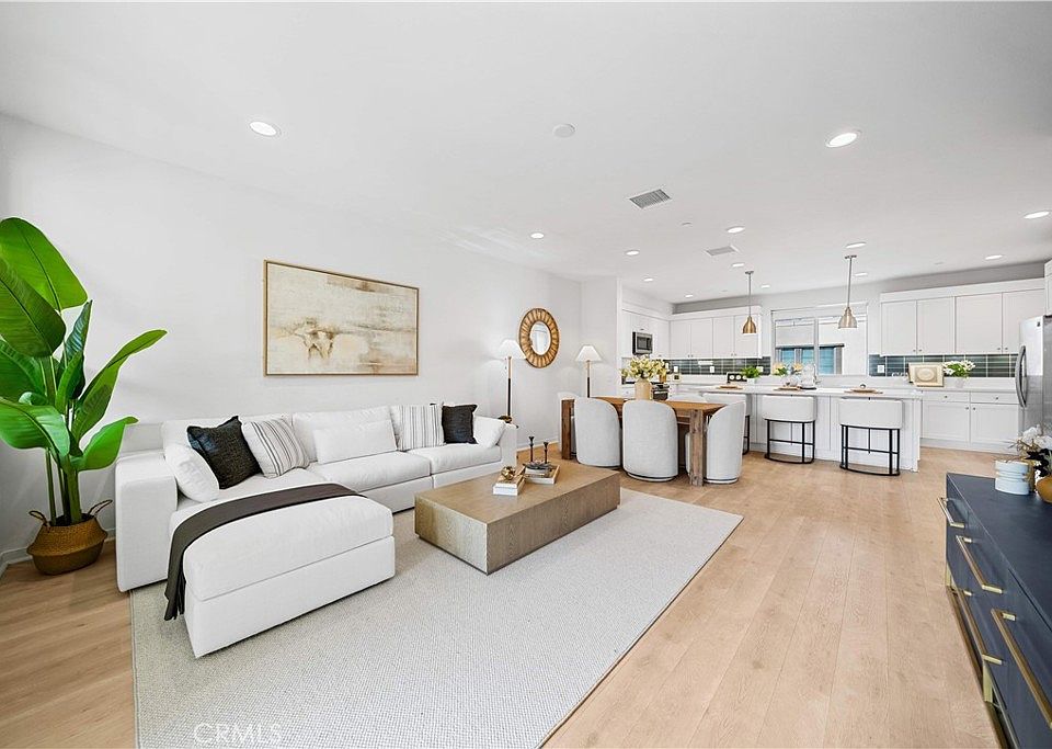 The second level is the heart of the home—an elegant open-concept living space highlighted by a fully equipped gourmet kitchen. Enjoy expansive countertops, a spacious island, and seamless flow into the dining and living areas. The living room is perfect for relaxing movie nights or hosting gatherings, with an adjacent deck offering additional outdoor entertaining space.