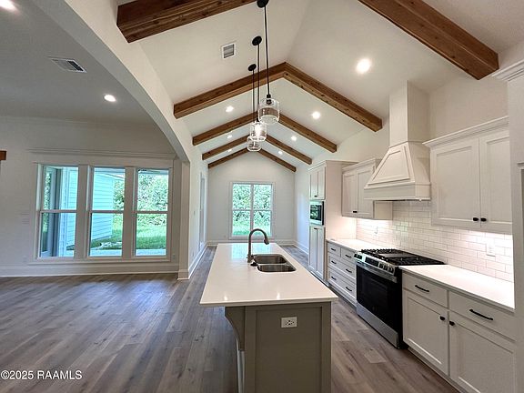 Energy Star Certified Home in Sought-After Beau Savanne Phase III! Welcome to the Viola French II floorplan, a beautifully designed new construction home offering 3 bedrooms, a study, and 2 baths in the highly desirable Beau Savanne community off W. Broussard. Living area features gypsum openings with beam lintels, a ventless gas fireplace, creating a warm and inviting space. The chef-inspired kitchen boasts a cathedral ceiling with wood beams, gas slide-in range with a custom hood vent, stainless steel appliances, 3cm granite countertops, under-cabinet lighting, an undermount sink, and custom-built cabinetry for both style and function. Luxury vinyl plank and tile flooring flow throughout the home, while the primary suite offers a spa-like retreat with a spacious bathroom with custom-tiled shower and two separate closet areas, master bedroom features a sloped trey ceiling. Exterior features include tongue and grove on front and back patio, architectural high-definition shingles, fixed wood shutters, gas line on patio for grilling, up to 10 pallets of sod, and a privacy fence--delivering both curb appeal and outdoor comfort. Plus, enjoy the energy efficiency of a tankless water heater for endless hot water. Don't miss your opportunity to own this stunning home in Beau Savanne Phase III--schedule your showing today!