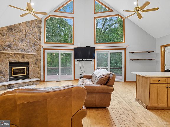 You won't want to miss this private custom designed 3 bed 3 bath lake home on the public side of Lake Anna that sits on a private cul-de-sac just minutes from the water with its own deeded boat slip! If you are looking for a home that offers serenity and lake life this may be the one. Sitting on over 3.2 acres with a large extended 30 x 40 garage in Tall Pines community this house is a site to see. Open concept interior with large windows and tons of natural light. 2 Main floor bedrooms and two main floor bathrooms its perfect for guests or family with a large loft bedroom and third bathroom upstairs. The primary suite also has a custom designed walk in closet and private bathroom. Wood floors throughout and cozy living room with real wood burning fireplace. Stainless Steele Appliances in the kitchen and main level laundry/mud room area with built in shelving. Walk out onto your large wrap around deck and enjoy your morning coffee. 10x12 storage shed in the back and upfront you have plenty of room for parking with a huge oversized garage that is over 1200Sqft and has lots of room for several boats & lake toys. Solar Panels on the house are paid off and PEARL certified. Plus you get a BONUS deeded covered Boat Slip with Solar Lift! Short term rental are allowed. Great lake location close to marinas, dining by boat and just a short drive to groceries and more! This community offers great common areas with a boat ramp, beach area, volleyball, horseshoe pit, two gazebos, grills, and picnic tables. This is also a golf cart friendly community. Come and tour this lake home today before its gone!