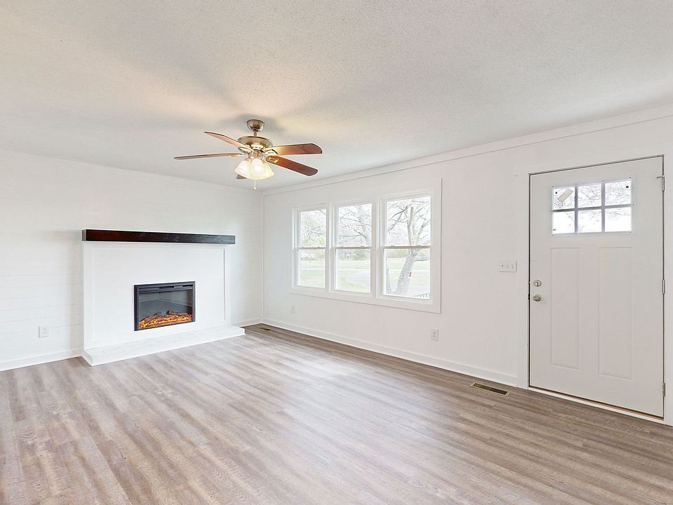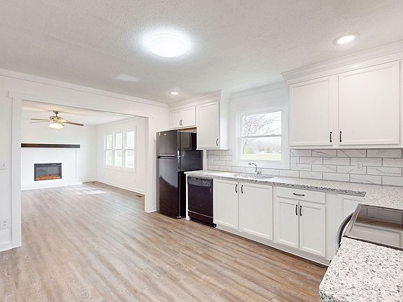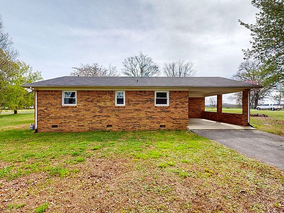 This lovely brick home sits on a corner lot with a huge yard, featuring a circle driveway in the front & an additional driveway leading to a large, attached carport in the back. The carport is brick and could easily be used as outdoor living space. The inside of the home has been completely updated with new paint, new cabinets, new countertops, new windows, new doors, and new flooring throughout! Every room has been renovated beautifully. There is an interior laundry room as well as an exterior laundry room. The kitchen features an open floor plan leading to the living room and a cozy fireplace. The primary bedroom features two spacious closets. This home is a must-see and feels much larger than the square footage provided. There is also a large storage shed in the backyard that could be used as a work shop.