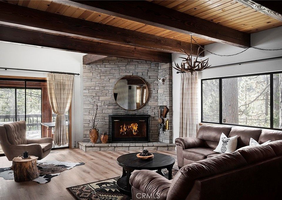 Welcome to Golf Course Rd, a spacious mountain retreat in Arrowhead Woods. This traditional home has been recently updated with luxury vinyl flooring and stone counters. The open concept living area opens out to a sunroom and large wrap around deck affording fantastic views of the adjacent Land Trust Reserve which is 80 acres of open undeveloped space. There's plenty of room to entertain friends and family with two guest rooms and an oversized primary suite with private balconies. Separate laundry room just off the kitchen and attached garage parking. Located within close proximity to Lake Arrowhead Country Club, hiking trails, golf, parks and a short golf cart ride to Lake Arrowhead Village.