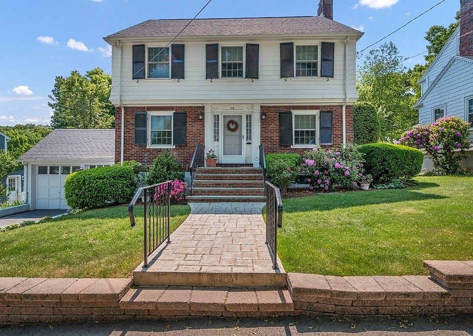 Classic colonial in lovely E.Milton neighborhood. This beautiful home has been lovingly maintained and regularly updated by long-time owners. First floor features living room with handsome built-in bookcases, gas insert fireplace and adjacent den. Good size dining room with built-in china cabinet leads to a well-designed eat-in kitchen with granite counters and cherry cabinets. Center hall accesses a half bath, 3 season enclosed porch and entry to the basement. Second floor offers 3 roomy bedrooms, a full bath, a screened 3 season porch and what could be a nursery, office or den, with access to the walk-up attic. Fresh paint and hardwood floors highlight the main living areas. Finished fireplaced basement has room for a pool table. Updated electric, central air, alarm system, sprinklered lawn, 2 car garage -- all this set on gorgeous professionally designed and maintained grounds, where flowers bloom from April till November.