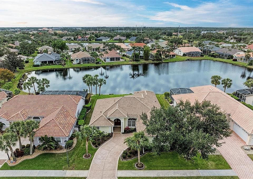 Welcome to 115 Grand Oak Circle, an entirely newly painted (2024) stunning 3-bedroom, 3-bathroom home with a den and NEW roof (2024), nestled in the desirable Hidden Lake Club of Venice, FL. This modern retreat offers 2,365 square feet of luxurious living space with OVER $80,000 in upgrades. As you enter through the elegant French doors, you're greeted by a formal dining room and sitting area. The sliding doors in this space draw your eyes beyond, offering captivating water views of the serene lake. The home features high ceilings and elegant tile flooring throughout, with NEWER luxury vinyl flooring (2019) adding a touch of warmth to the dining and sitting rooms, as well as the bedrooms. The open-concept FULLY RENOVATED kitchen (2021) and living room are a chef's dream, featuring new granite countertops, new oak cabinets, and crown molding that add a touch of sophistication to the space. The master suite is a true sanctuary, located on the left wing of the home. It boasts dual sinks, a walk-in shower, a soaking tub, and two generous closet spaces. On the right side of the home, just off the family room, you'll find two additional bedrooms and a shared bathroom, providing privacy and convenience for family or guests. Beyond the family room, discover a cozy den and a full bathroom, perfect for a home office or guest suite. The pocket doors throughout the home offer privacy without compromising the open feel of the space. Step outside to the newly screened-in lanai (2019), where you can relax and enjoy breathtaking views of the lake and lush greenery. This outdoor oasis features a hot tub (2017), perfect for unwinding after a long day, and a newly added nonskid flooring (2022). The expansive 9,150 square foot lot provides plenty of space for outdoor activities and entertaining. Additional upgrades include a NEWER AC and water heater (2021) and a Culligan water softener. Living in Hidden Lake Club means enjoying a year-round heated pool and spa, a fitness center, a library, and a clubhouse with a usable area for private parties. The community also offers bocce ball, shuffleboard, basketball, and tennis/pickleball courts. Conveniently located, this home provides easy access to local amenities, shopping, dining, and the beautiful beaches of Venice. Don't miss your chance to make 115 Grand Oak Circle your new home!