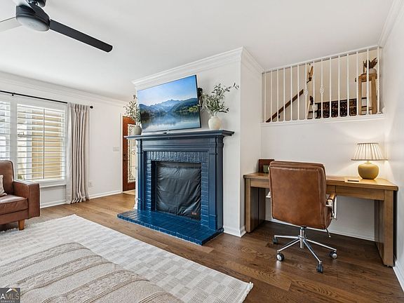 Picture perfect home in central Roswell location. Move right in and enjoy a bit of quiet luxury in the best darn deal around. This two bedroom, two and a half bath home is fresh, top to bottom, and features an ideal floor plan with both bedrooms upstairs, a separate living room, a place to dine, and a place to grill. The kitchen is nicely updated and has an open space in the wall to overlook the dining area. Think alfresco dining when stepping onto the private (really private!) patio, or choose to leave the doors open during crisp fall days. Choose to lounge in the extended dining area, or hang out in the large, fireside living room. There is even a "work nook" that helps keep all things buttoned up. Upstairs the secondary room and bath are right across the hall from one another, and the primary suite is quite large. Not one space is overlooked in this home. Your right at home at the first step inside. And if you're a person that's always out and about, this home is at the center of it all. Less than 1 mile to Historic Roswell -- only a short walk or bike ride to shops, dining, and the Roswell Area Park. In an easy 5-minute drive you're in Crabapple. Head east and you're at GA400, head west and you're a stone's throw to East Cobb county. Truly a gem!