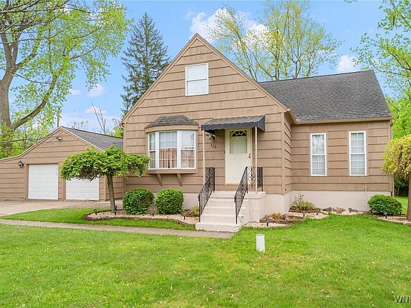 WELCOME HOME to this charming, well-maintained, four-bedroom Cape Cod that’s tucked onto a wooded lot at the end of a quiet street in West Seneca, away from the hustle and bustle but a short drive from everything you need. This home is move-in ready and includes two first-floor bedrooms and feels larger than the square footage suggests with extra space in the eat-in kitchen and family room. Both bedrooms on second floor are generously sized. Big-ticket items such as roof, furnace and A/C are in very good condition. Wall-to-wall carpeting is covering hardwood floors in almost all areas. The exterior received a fresh coat of paint a few weeks ago. Patios in front and back were replaced last week. Dry basement includes flexible finished room, ideal for an office, playroom, game room and more. Basement also includes plumbing for another full bathroom. Garage has space for two cars, plus another bay for storage. Fantastic lot with woods on two sides provides privacy and peace. Beautiful home with potential for more. Showings begin immediately. All offers, if any, must be submitted by 11 am Tuesday, May 27.