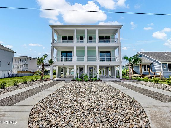 Welcome to where timeless charm meets modern coastal living — just one block from the ocean in the heart of Kure Beach. This brand-new luxury townhome offers 1,963 sq ft of beautifully designed space with 3 spacious bedrooms, 2.5 baths, and a curated blend of quality finishes and functional design. The ground floor features covered parking for three, two driveway spots, a private enclosed storage room, refreshing outdoor shower, and a conditioned entry with coat closet—ideal after beach days.
