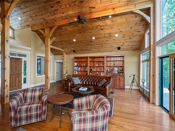 Raised-hearth double-sided stone fireplaceFull-length deckExpansive deckProfessional landscapingSpacious officeEn-suite bathBeautiful stone flooring