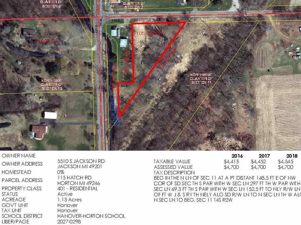 Great building location! Easy access to shopping while maintaining country feel. Property runs along North Branch Kalamazoo River. Hanover Horton school district.