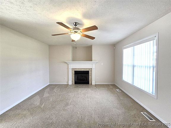 Beautiful home in the desirable Overhills Creek Community. Home features 3 bedrooms, 2.5 baths with Main Suite downstairs and 2 additional bedrooms plus bonus room upstairs with hallway bathroom. This home is so inviting with its beautiful landscaping, relaxing front porch and large patio. Enter into the large living room with tile surround fireplace, large open kitchen with breakfast bar, stainless appliances and eat-in area. Large Main Suite w/tray ceiling, plenty of natural light, double vanity, garden tub and separate shower. Enjoy the privacy fenced backyard with a perfect deck that overlooks the yard. Very large bonus room with closet that can be easily turned into a 4th bedroom or playroom/movie room. Up to 2 dogs allowed with a non-refundable pet fee of $250/per dog, no cats. Close to Fort Bragg and AFB Pope, shopping and dining. Call us today to view the home.