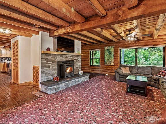 A Unique Log Home Gem, meticulously cared for on a peaceful dead-end road. Property is nearly two acres with greenbelt and serene landscaping . This fantastic home features whole house cooling fan, new Anderson Windows, new roof and a top-of-the-line pellet stove insert for efficient heating. A large 35X40 shop with an Accessory Dwelling Unit (ADU) with parking and good rental history, that could provide extra income. Enjoy fruit trees, deer proof garden, and outdoor fire pit. Large, covered deck, perfect for relaxing. A private balcony off primary suite for enjoying the views with your morning coffee. Unfinished area above the garage for a studio, workshop, or whatever. This outstanding property needs to be seen to truly be appreciated!