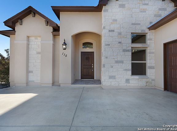 3 BED/2 BATH 2,114 ft. CUSTOM HOME on 1.02 ACRE HILLTOP w/ Gated Private Drive in desirable MYSTIC SHORES IN SPRING BRANCH! Open Concept Floorplan, Living Room with Dramatic Stone Fireplace & Soaring Ceilings with Wood Beam Accents, Gleaming Porcelain Tile Flooring and Abundant Natural Light. Chef's Kitchen w/ Custom Cabinets, Texas Size Breakfast Bar-Granite Island PLUS High-end features & finishes throughout. Oversized Media or Formal Dining is perfect for entertaining in Style. Luxurious Master Bedroom w/ En-Suite Soaking Tub & Separate Shower. Huge Master Closet features unique hidden access to the laundry room! Perfectly placed Mudroom off the Garage which includes built-in shelving and sealed flooring. Exterior features Natural Rocks flanking Custom Gated Entry, Mature Trees, Xeriscaping and Sealed Cement Driveway plus, Bonus Hidden Storage Room. Southern Living back Patio w/ Wood Plank and Ceiling Fan Perfect for Relaxing or Entertaining while overlooking Expansive Hill Country Views! Come Home & Enjoy Resort Style Living with Canyon Lake Waterfront Access & Plenty of Neighborhood Amenities such as Pool. Jogging Trails, Sports Courts and More! MUST SEE!!
