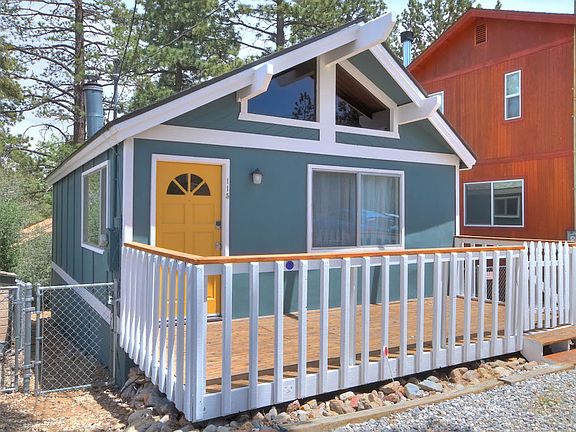 A must see move-in ready cabin with quality upgrades! Front deck to soak up the morning sun while enjoying that first cup of coffee. Soaring vaulted beamed ceiling in living room & kitchen with honey pine finish. Mountain cabin features such as rough-hewn paneled accent walls, stone styled wood burning fireplace with wooden mantle & convenient gas starter. Dual pane picture windows & a TRUE CENTRAL FAU high-efficiency heating system that provides heat to all rooms, no cold bedrooms! Room to add an A/C unit if desired. Newer roof and roof deck with Tiger Paw underlayment. New water heater. Smart home features for the thermostat & front door. Fenced back yard and lots of room under house for storage. See attached features list for more info! A perfect cabin to enjoy all 4 Big Bear seasons! Close proximity to local Sugarloaf general store, post office, fire station & park!
