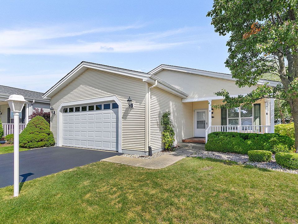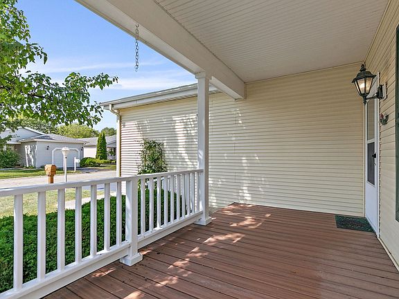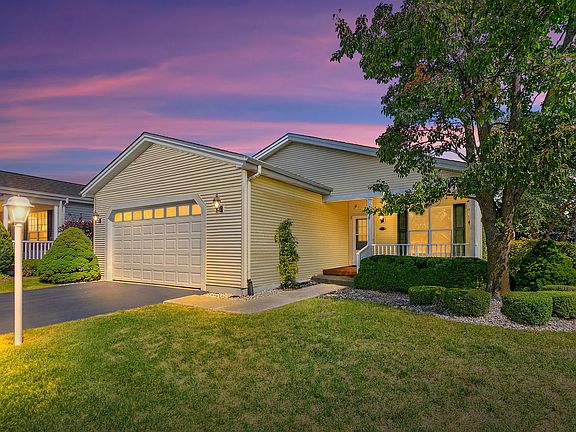 Welcome to 115 Hunter Court in the in the picturesque countryside Saddlebrook Farms community. Saddlebrook Farms is a premiere 55+ community know for its unsurpassed natural beauty, inland lakes & acres of lush forest preserves. The original owners have lovingly improved & meticulously maintained this Sprawling 2 Bedroom/2 Full Bath Ranch Home. The open airy floor plan will provide you with the function, style, design & quality that you have been looking for! The Spacious Kitchen is an absolute dream, designed with an abundance of cabinetry that offers both style & functionality. Perfectly positioned within the open floor plan, the kitchen flows seamlessly into the adjoining Living & Dining areas making it ideal for entertaining & everyday living. Whether you're a seasoned chef or simply love the convenience of plenty of storage & counter space, this kitchen is as functional as it is inviting! The Kitchen Table Sitting Area is just steps away from the kitchen workspace, an easy transition from meal prep to mealtime, surrounded by windows that fill the space with natural sunlight. Whether it's enjoying morning coffee in the glow of the sunrise or casual meals, the sunlit dining nook creates a cheerful atmosphere while overlooking the outdoors. The Spacious Living Room will surely impress. The open layout allows for flexible furniture arrangements & flow into the Dining Area, creating the perfect setting for everyday comfort & splendid for all your gatherings& entertaining needs. The Dining Room Area, large enough to easily accommodate a table to seat 6; make hosting dinner parties a pleasure with more than adequate space for quests to sit & circulate throughout. Just off the Living Room, discover the light-filled Four Seasons Room w/vaulted ceiling-a versatile retreat designed for year-round enjoyment. Surrounded by walls of windows, this space brings the outdoors in while keeping you comfortable in every season. Perfect as a sunny sitting area, reading, art room, this flexible space meets a variety of needs & adds functionality to the home. The Primary Bedroom is a true retreat, featuring a large bay window that fills the room with natural light & creates a serene space, offering plenty of room for all your furniture. It features a generous walk-in & 2nd closet that offers abundant storage, complete with an en-suite bath. The 2nd Bedroom offers a comfortable & versatile space, perfect for a guest room, home office; ample room to suit your needs. There is No Shortage of storage here, the over-sized garage with epoxy floor has been outfitted with a pull-down stair to a finished attic space, wall mount storage cabinets, a large sturdy workbench w/ample shelving above & custom built-in wall cabinetry with pull out drawers added to the massive utility room! Step outside & enjoy a Maintenance-free front porch & deck that offer lasting beauty without the upkeep! Peace of mind here with newer furnace, central air & appliances. Additional features include ceiling fans throughout, custom blinds, recessed lighting, utility sink. This home has been so well maintained, spotless & ready to move in! Explore miles of walking & biking paths, beautiful gardens, resident gardening plots, picnic by the pond, stocked fishing lakes, paddle boating, bocce ball, fitness center, dance & aerobic classes, pickleball courts, neighborhood potlucks, holiday gatherings, hobby/game room, library, billiards, Clubhouse, Lake Lodge & endless social clubs & activities all year round. Here, you can experience a close-knit, vibrant community that offers something for everyone. HOA includes: property taxes, water, sewer, lawn care, snow removal, garbage removal & all onsite amenities! The Community offers residents low cost internet & cable. Enjoy the perks of resort-style living in Saddlebrook Farms, a 700-acre Community in a beautiful setting just 10 minutes form I-94. Bus access to shopping & dining. A beautiful home in a desirable location within the community