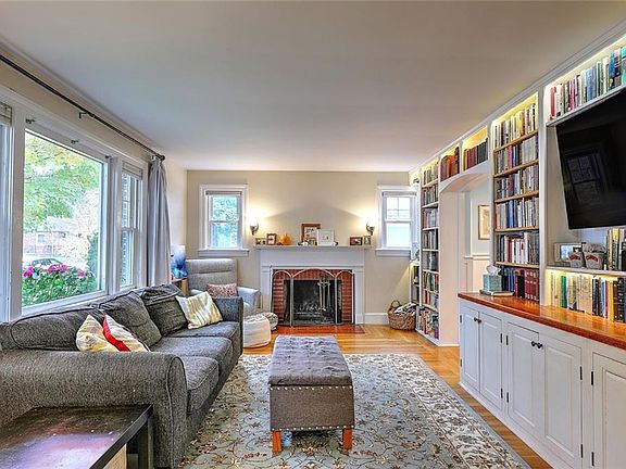 Well-proportioned rooms with original details and smart updates make this 1950s Garrison Colonial an enduring classic. Its location in the Elmhurst section of Providence provides a lively urban lifestyle. Warm hardwood floors welcome you and add instant appeal. Move directly into the living room featuring a wood burning fireplace an impressive wall of built-in shelves. A picture window lets the sun shine as you engage with guests before walking into the wainscoted dining room. The home’s three-season room overlooking the sizable fenced in yard lends more space for entertaining and relaxing. A detached, two-car garage sits nearby. Segue back inside where a cheery kitchen offers eat-in space and top-of-the-line Kitchen Aid stove. Subway tile extends from the backsplash onto all four walls. A stylish and convenient half bath completes the main floor. Step upstairs to the second story to discover a full tiled bath and three comfortable bedrooms, including an oversized primary bedroom, each enjoying delicate light from windows on two sides. This array of restful retreats completes the superb layout of this charm-filled home. With enviable proximity to downtown Providence, I-95, Brown University, RISD, plus the countless restaurants, cafes, the specialty shops of Federal Hill, Olneyville, Downtown and beyond! Add updated electrical service, a maintenance free exterior, and a young roof for truly turn-key living.