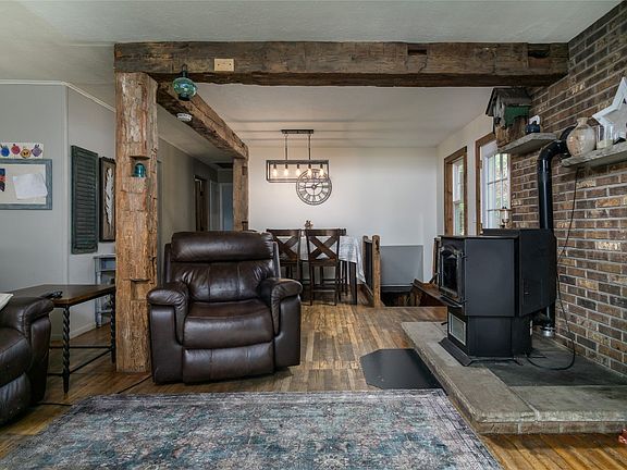 Once upon a time there was a rustic ranch on a country acre that had tremendous potential but was in need of a new owner. This owner could be you! So many cute things about this house and with work and time it could be an amazing year-round home or retreat. Hardwood floors, barn beams, new farmhouse fixtures and a cozy pellet stove make a warm and cozy environment for those chilly autumn nights. Adorable nook for a desk and at home office, side projects or painting the surrounding wildlife and trees. Large primary bedroom with custom barn door closets, hardwood floors, new Pella windows and lighting. Open cabinetry in the kitchen with newer stainless appliances and pantry for added storage. Heated garage and laundry/mud room with outdoor fire pit area, shed and large driveway for additional parking. Some supplies will be left for finishing the siding and windows. This house has so much promise but needs a cash buyer or rehab loan due to items needing to be completed. Call Today!