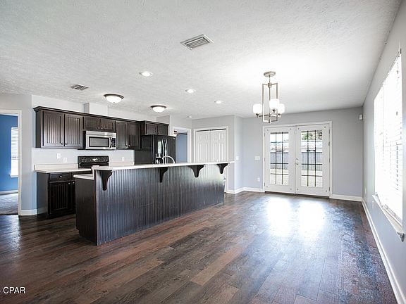 Come check out this 3/2, open floorplan home! This house features laminate flooring, spacious bedrooms, bronze light fixtures, ceiling fans throughout, and french doors in the dining room! The kitchen is completely open to dining and living room and offers a breakfast bar, custom cabinetry, pantry and plenty of counter space. Privacy fenced yard with covered patio! Conveniently located close to Tyndall Airforce Base. Tenant covers utilities, pets negotiable, security deposit is one month of rent, come visit today!