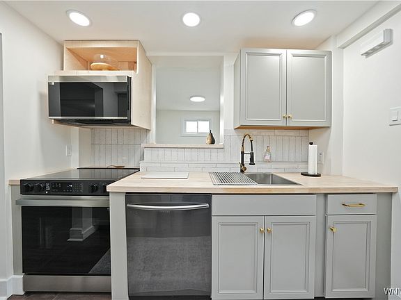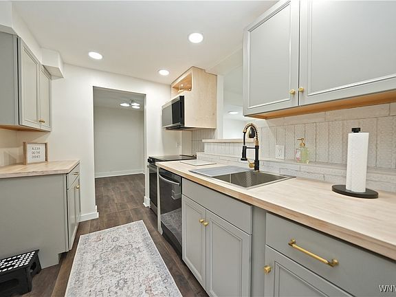 Welcome to 115 Koenig, a fully finished Town of Tonawanda home ready for you to move in. Kitchen features new ceramic backsplash, butcherblock counters, new cabinets, and graphite appliances. Plenty of living space on the first floor, with a formal dining area, living and family room. All with luxury laminate plank flooring. Updated bathrooms, with new vanities, and toilets, bath tub features subway tile backsplash. Duel heating and AC units. New furnace and hot water tank, and a new extra efficient Mitsubishi heating and cooling pump. All new windows, doors, lighting and fixtures, throughout; as well as fresh paint and carpets. No details missed here, a truly must see!