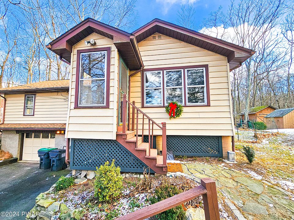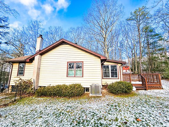LAKE VIEW SERENITY in this lovingly and well crafted, beautiful ranch home... You will be hard pressed to find a home better cared for than this one! Every detail inside boasts pride of ownership. And the view... that speaks for itself! This very special, Walker Lake home will have you feeling right where you belong. Gorgeous custom wood moldings throughout welcome you to this lovely, open, and yet cozy space. Owners completed many updates - remodeled bathrooms and kitchen w/ soapstone countertop, many newer windows, & hot water heater to name a few. Beautiful tile work in the kitchen & bath, and showcasing the centrally located warm/ picturesque wood burning fireplace perfect for those snow covered Poconos evenings. This truly charming home even includes central air, making all 4 seasons perfectly comfortable and enjoyable. Home also features a bonus space enclosed & tiled sun porch, full basement with multiple storage rooms, laundry w/ utility sink, garage, back deck, front enclosed porch, multiple storage out-buildings, and true front and back yard spaces. Located in the quiet neighborhood of PA Lakeshores, yet conveniently close to the town of Milford, highway for easy commute, and resort style Lake Wallenpaupack area. Schedule your appointment today and begin your path to ''LAKE LIFE'' living!