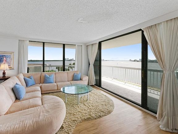 Southeast unobstructed Waterfront Views from every room in this very spacious 3 bedroom and 2.5 bath condo with wrap-around balcony. The location cannot be beat. For the buyer that does not want to be too high up, but high enough to get spectacular views. See the boats going by all day long. Enjoy sunrises and sunsets from your sunny balcony. This building is in good financial shape. Enjoy Belle's waterfront restaurant, 2 mile waterfront walking path and 24 hour manned gatehouse. Great shopping & restaurants nearby. Jack Nicklaus Signature Golf and Tennis across the street. 5 minutes to the beach. Everything is here and 20 minutes to the Palm Beach International Airport. The third bedroom was opened up to the living room, but could be put back easily.