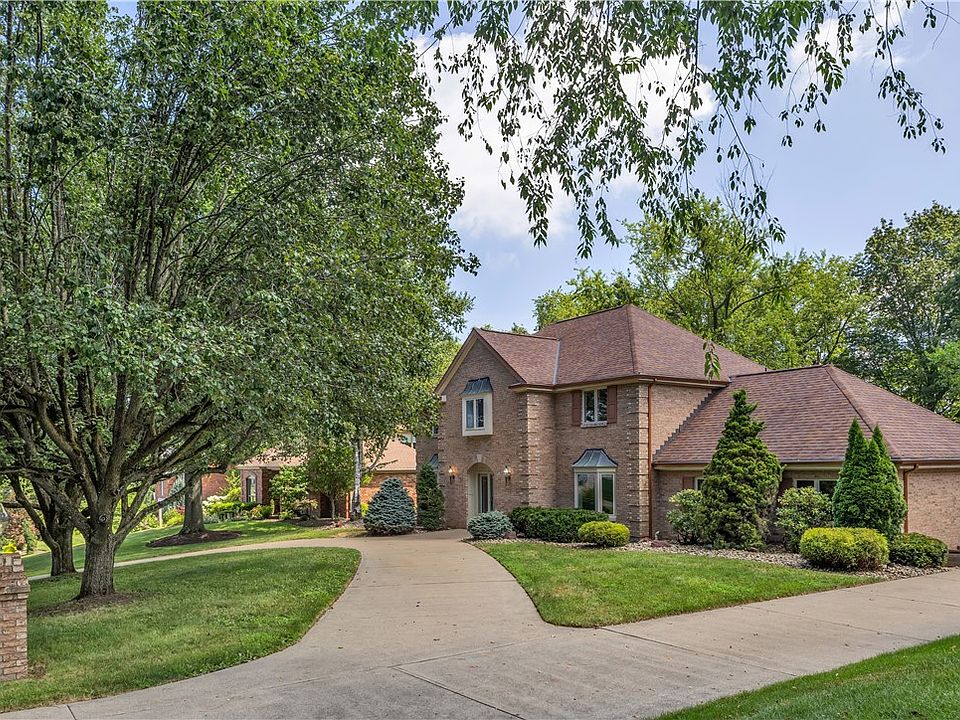 WELCOME to this stunning 4 BR, 4.5 Bath all brick home! Level entry w/Attached Garages & Governor's Driveway for easy access *Flowing floorplan perfect for everyday living & entertaining *Fully equipped Kitchen for your culinary creations opens to the FR w/cozy Fireplace, Built-ins & views of the rear grounds *LR, Home Office or Music Room boasts custom Bookcases *Foyer w/Circular Staircase leading to Upper Level *Master Ensuite w/Sitting Room, relax or read a book, 3 Closets & updated Bath w/dual sinks *Surprise...another Ensuite BR w/bookshelves & walk-in closet, 2 additional BR'S & Bath complete this level *Expansive lower level FR w/Fireplace, 5th BR, Workout Area or Study *Don't miss the spacious screened in Porch off main level leading outside to Fire Pit for those brisk nights overlooking the treed lot *Freshly Painted interior, New Carpeting & lower level Flooring, ready to MOVE IN *LOCATION, LOCATION TO RT19/i79, Schools, Shopping, Parks, Walking Trails & MORE!