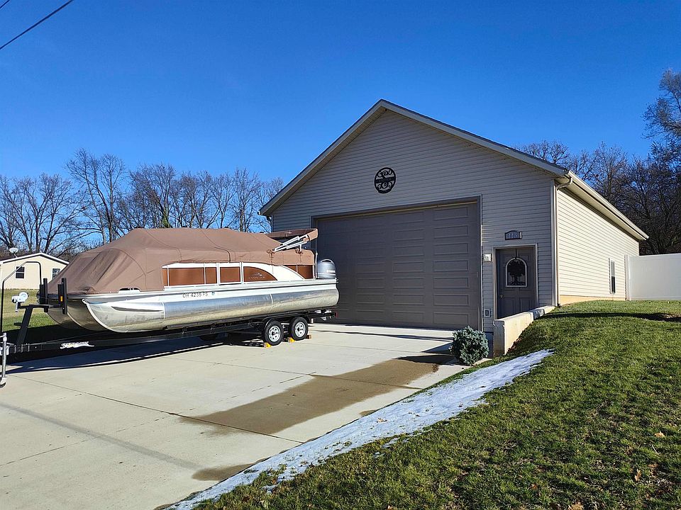 This quarter acre lot boasts a beautiful Van Gordon built 48' x 30' Garage (1440 sq ft). The garage was built in 2020 and has a loft that runs the length of the building for additional storage. This lot has it's own well and propane tant that provides water and heat to the building. Insulated and finished on the inside with high ceilings and plenty of lighting! A beautiful vinyl privacy fence encompasses the area behind the building which has a great yard space and fruit trees.