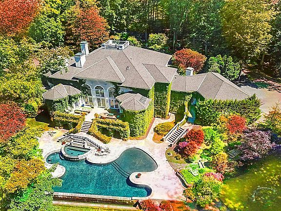 If Leonardo da Vinci could build you a villa near Manhattan, this nearly 15,000sf "Mona Lisa of Mansions" would be it! Completed in 2005, this stately residence in Pound Ridge, Westchester is only 45 minutes from NYC. Almost 18 acres of PROTECTED and PRIVATE nature preserve. Infinity pool with waterfalls, fountains, a jacuzzi, swim-up bar with seating for four, a zero-entry baby pool and a 60-foot lap lane. 800 square feet of windowed gym space to keep the body, mind and immunity charged. 300 square feet of wine cellar luxury to challenge that immunity. 500sf cedar closet where moths don't stand a chance! Full spa with hot tub, water-jet room, sauna and steam. Two spacious office areas perfectly set up for work-at-home professionals. Full-floor game and billiards room with a double-sided fireplace, wet bar and an old-fashioned pub. A two-level library with spiral staircase. 4 car garage.