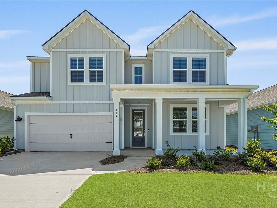 Our stunning Santa Fe floor plan, where luxury meets comfort in over 3,000 square feet of thoughtfully designed living space. This home features an expansive family room with vaulted ceilings, creating an inviting atmosphere. The owner’s suite, located on the main floor, offers a serene retreat, complemented by four additional bedrooms for guests or family, totaling five bedrooms and four full baths. Enjoy the convenience of a pocket sliding door that seamlessly connects indoor and outdoor spaces. The covered patio, adorned with a vaulted ceiling, is ideal for entertaining or relaxing. A spacious loft upstairs provides space, perfect for family activities. Designer trim elevates the aesthetic, while hardwood stairs add a touch of elegance. Must haves include an 8 foot front door, Hardie siding, irrigation system, blinds and SS GE Cafe appliances.* Location, Location! 15 minutes from Hyundai Metaplant & 15 minutes to Costco & Pooler. July closing