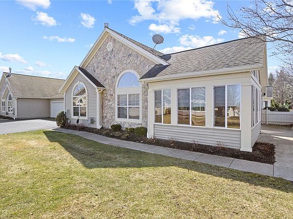 ENJOY THIS BEAUTIFUL 1846sf CANTURBURY STYLE TOWNHOME IN THE VILLAS AT FIELDSTONE COMMUNITY ~ A LARGE 2 BEDROOM ~ PRIMARY HAS A VERY SPACIOUS BATH & LG VANITY ~ 2ND BEDRM ALSO SPACIOUS ~ ANOTHER FLEX ROOM FOR AN ADDITIONAL BEDROOM/DEN/OFFICE/LIBRARY ~ OPEN KITCHEN WITH AMPLE COUNTER & CABINETS HAS A BREAKFAST BAR AND DINING AREA ~ ENJOY THE SUN FILLED SERENITY OF THE SUNROOM OVERLOOKING THE POND ~ SPACIOUS LAUNDRY ROOM & LOTS OF STORAGE CLOSETS ~ RG&E BUDGET $170 MO. ENJOY THE BEAUTIFUL CLUB HOUSE WITH A KITCHEN ~ POOL TABLE ~ LIBRARY ~ GYM & IN-GROUND POOL ~ OPEN HOUSE SUNDAY 3/30 2-4PM