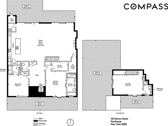 Duplex Penthouse 115 MERCER STREET is a boutique 8 unit condominium with direct elevator entry, part time doorman, featuring 2,741 Interior Square Feet and enormous private landscaped terraces off every room with a grand central skylight, bathing this home in sunlight throughout the day. On arguably the best SOHO block, this two bed, three and a half bath residence has four private landscaped terraces totalling over 2,500 EXTERIOR Square Feet. The keyed Elevator opens directly into your private foyer. Two winged bedrooms, with ensuite baths, each have access to a 50' wide terrace. The expansive open plan living/ dining area features an open plan kitchen, wood burning fireplace, dramatic glass atrium directly above, and large, private, landscaped terrace running the entire width of the building. The staircase leads to a wide open den with full bath, wet bar and two more private terraces of approximately I, I 00 square feet. Radiant heated bathroom floors, ample storage, laundry and wide plank floors finish the residence with thoughtful attention to detail. Available July 1. Pets are permitted.