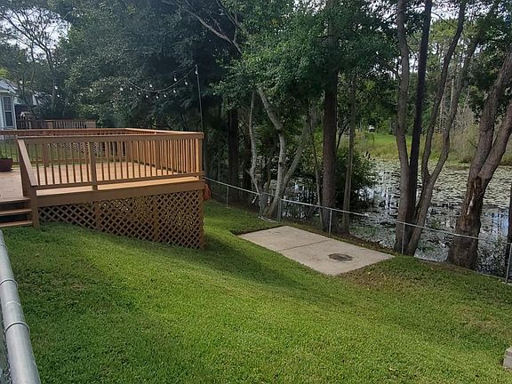 Super Cute Split 3 bedroom 2 bath floorplan South of I-10! This home is located in a family friendly, quiet neighborhood. Large deck and fenced backyard overlooking a large pond. Master bedroom is very spacious! New appliances and no carpet! New AC installed 2024! Washer/Dryer hookups included. Outdoor shed for extra storage. No backyard neighbors! If you like to fish, catch some Bluegill and Bass from your own backyard!