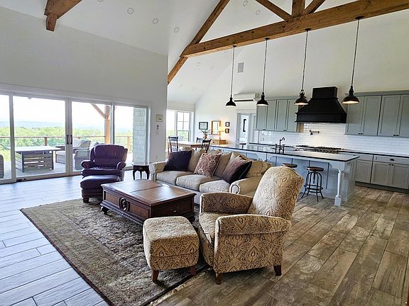 Situated on 9 acres of landscaped gardens, lush fields, stone walls and woods high in the mountains of Union, this Stunning Contemporary Craftsman Home must be seen to be fully appreciated - the views are exceptional but the home itself is truly a masterclass of design and luxury from which to enjoy them!!! Sip your morning coffee as you watch clouds roll across the everchanging landscape from the timber framed covered back deck of this mountaintop retreat, sit and relax by the woodstove in the stunning Great Room with exquisitely beamed vaulted ceilings and gorgeous tile plank flooring or create a sumptuous meal in the beautifully appointed designer Kitchen featuring soapstone countertops, a paneled Sub-Zero refrigerator, a Wolf 6-burner gas range with pot filler and a spacious center Island.