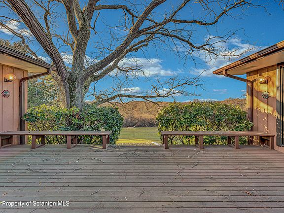 Amazing mid century modern ranch home. Million dollar views of ''The Endless Mountains'' from every window of this Abington gem. This home was made for entertaining, from the formal Dining Room to the spacious eat in kitchen with coffee bar and pantry. Outdoor entertaining is a delight on the 24x15 courtyard deck with built in seating overlooking your spectacular 1.93 acre private oasis. Chilly winter nights will be well spent in the cozy family room with built in bookcases and stone walled fireplace. The bedroom wing offers a generous sized Master ensuite with updated bath and walk in closet. The 2nd bedroom is serviced by a newly renovated corian and tiled full bath and also offers closets galore. Period spiral staircase leads to an additional 862sq ft ol lower level living space, perfect for teen hang out, gaming space or in law suite. Large and newer picture windows allow sunshine to fill the lower level where you will also find another 3/4 bath and roomy laundry room. Parking is a breeze with a newly sealed circular driveway and 2 car attached garage. 5 individual split units keep the home cool in the Summer and comfortably warm all winter long. Abington Schools, Waverly Elementary. Come see this piece of paradise today. Roof approx. 10 yrs. There are 2 parcel #'s 08004020047 & 0800402005105