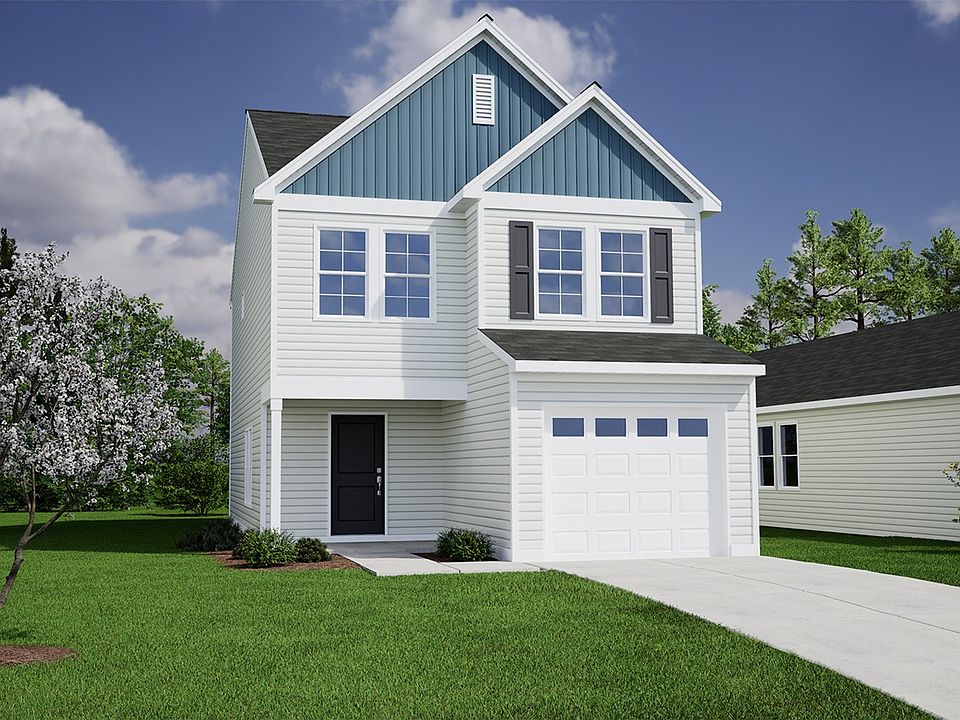 The Bartow! This three-bedroom, two-and-one-half-bathroom home has an open-concept layout. Luxury vinyl plank flooring runs throughout the common area spaces. The kitchen has granite countertops, white cabinets and stainless-steel appliances. The backyard features a covered porch. Upstairs, the primary suite has a spacious bathroom and a large walk-in closet. Two secondary bedrooms, a hall bath, and laundry space complete this home.