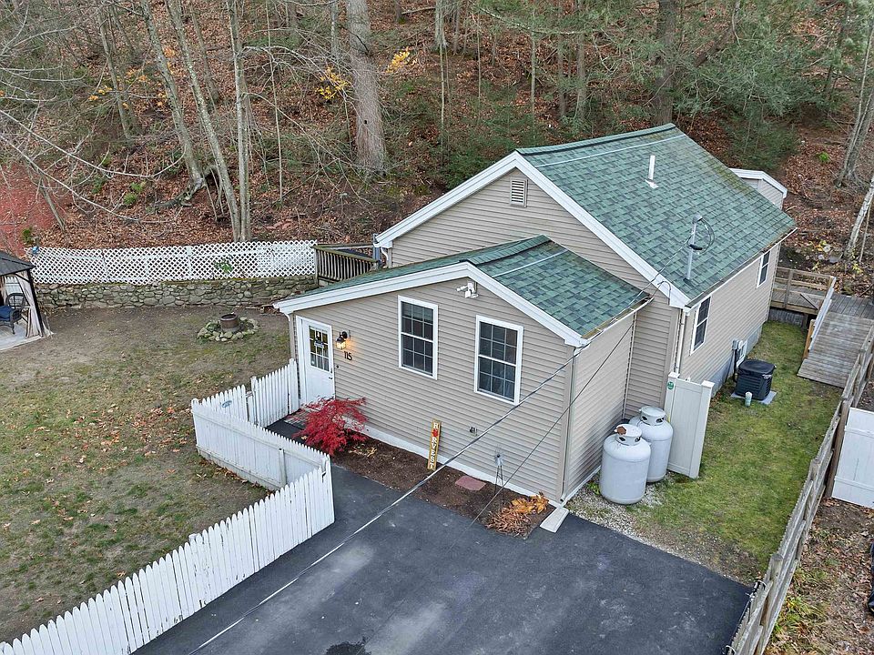 Want all the pros of living by the water without the costs and risks of being on the water? This adorable Bungalow is edged perfectly into the Piscataquog riverbank, but sits far enough back to keep you out of the flood zone. This 2 Bedroom/1 Bathroom home, may look small, but offers a spacious feel inside with open concept Living/Dining/Kitchen, which flows effortlessly thru the sliding glass doors, onto the deck overlooking the private, fenced in yard. Enjoy the warm summer days under the Pergola, or the stars out at the fire pit, or just a brief walk down the street awaits your Moose Club Park Private Beach (100ft of beach access) which makes for a very serene lakeside feel without ever leaving your neighborhood! This home is perfect for first time home buyers, working professionals, empty nesters, anyone who doesn't need a lot of space, enjoys being outdoors, and who doesn't want to live in the city, but be able to easily get to everything the city has to offer. Public Water and Sewer, propane heat, and an additional pellet stove in the unfinished basement section to make sure you stay warm no matter where you are in the house. The Rail Trails are also near by for the land lovers. Shopping and all major highways just a short distance away. Both the Seacoast and Boston are under 1 hour. This one is a must see, schedule your showing today!!