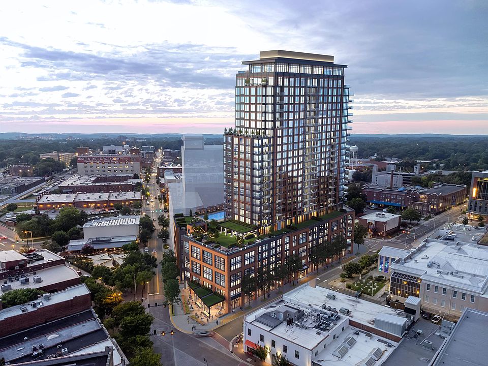 Welcome to The Novus - Durham's premiere new high rise condominium! Open concept space and full length glass maximize the spectacular views. Waterfall edge countertop, integrated cabinet front appliances, and large patio - high end finishes throughout create an air of sophistication. This highly amenitized building includes a pool, hot tub, pickleball court, gym, club room, dog park, outdoor theater, and golf simulator among other wonderful features. This unit also comes with two dedicated parking spots.