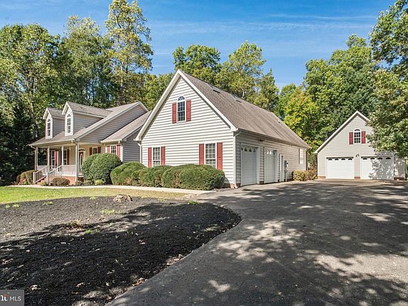 Built in 2000, this custom Cape Cod sits on a gorgeous 3.43-acre lot featuring over 2400 finished square feet, 3/4 bedrooms, 2 1/2 bathrooms and 2-car attached garage. An extra bonus is a stand-alone, oversized 2-car garage and upper-level office apartment (600+ finished square feet), great for car or mechanical enthusiasts! A covered front porch and entry foyer welcome family and friends alike as they enter the home. Upon entering, you are immediately wowed by the beautiful hardwood floors throughout the main level - foyer, dining room, family room, kitchen and breakfast areas. The dining room is perfect for family get-togethers and enjoys tons of natural sunlight. The family room boasts a vaulted ceiling, raised brick gas fireplace and French doors to the rear porch that extends the full length of the rear of the home!! Overlooking the family room is an amazing kitchen featuring custom hickory cabinets, spruce ceiling, Corian countertops, custom tile backsplash, built-in oven and microwave, large center island and sunny breakfast area with bay window. Enjoy a main level master bedroom with vaulted ceiling and large master bathroom to include a jacuzzi jetted tub, separate shower, ceramic tile floor, dual sinks and huge walk-in cedar closet. Just steps away from the master suite are stairs leading to large finished loft/den/office/optional 4th bedroom and extra storage. Two other spacious bedrooms with shared bathroom, laundry closet and half bathroom complete the main level. Welcome Home!