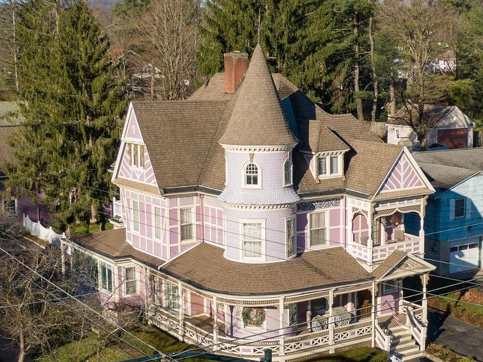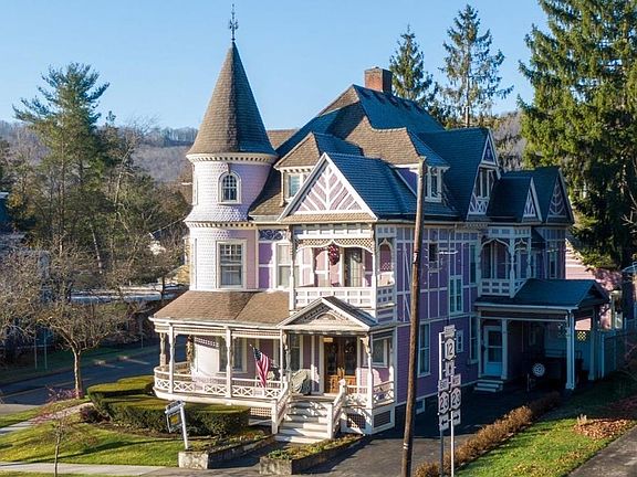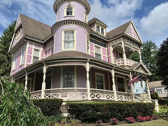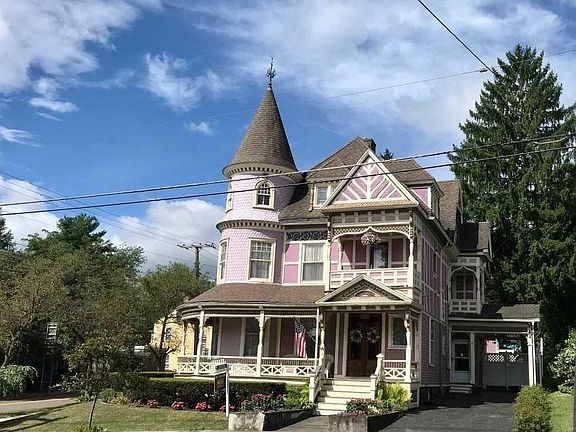 Queen Anne Victorian! Mega-Magnificence! Bring Your China! Elegance to Spare! Original but Completely updated! Quality Prevails! Large Custom Kitchen, Large Formal Dining, Room 5 Bedrooms,4 Baths,4 Seasons Sun Room , Large Living Room with Fireplace and Parlor, 1st Floor Den or Office, Formal Entry Foyer with open Stairway fit for a Queen! Master suite with new Bath Craftsmanship is unparalleled Quality, walk up Attic large enough for a dance Upstairs Also fetchers a second back stairway ,Walkout Finished walkout basement was previously a veterinary Clinic, Could be Home Business ,8 Parking Places Plus Carriage Barn ,Carriage Barn has separate meter and water ,Upstairs is a finished Shop with ramp instead of stairway for easy moving. This Home would be a Wonderful Bed and Breakfast! Zoned R2 B&B use allowed with a special permit 4 Hours from NYC , 30 Minutes from Colgate University, 1 Hour to Syracuse International Airport.