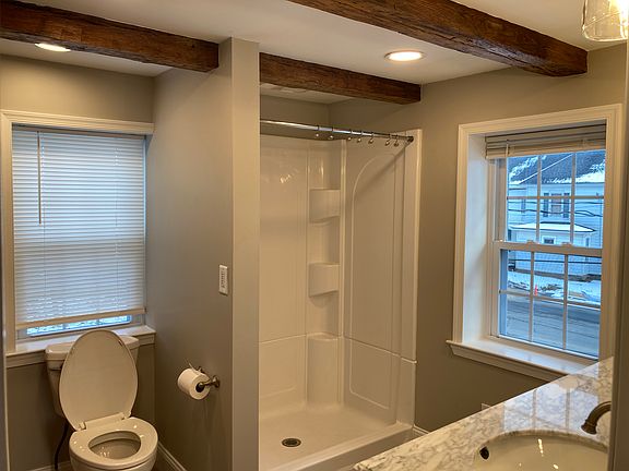 This charming 4 bedroom, 2 bathroom home has been fully renovated from top to bottom and comes loaded with new appliances. The home features a master bedroom with exposed hand-hewn beams with an ensuite bathroom and large walk-in closet. Beyond the master bedroom, there are three additional bedrooms with closets. There is an additional 2nd floor full bathroom. The first floor features a beautiful new kitchen with country views, spacious living room, large walk-in closet and spacious laundry room. The home features all new appliances including a large refrigerator, stove, dishwasher, washer and dryer. Enjoy outdoor living with a wrap-around porch with beautiful views, large lawn and back porch for grilling. There is a detached one-car garage with roll-up door and parking spots.
