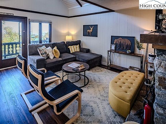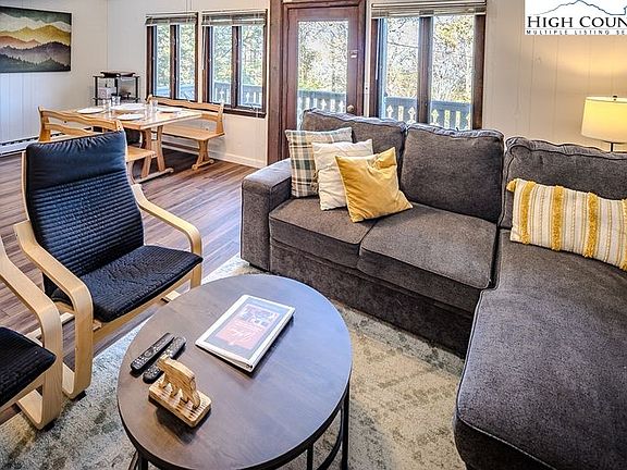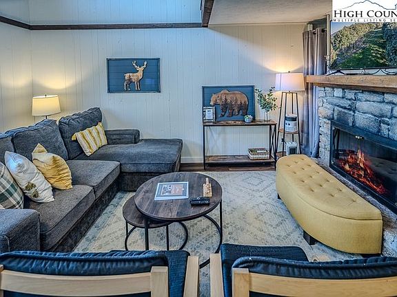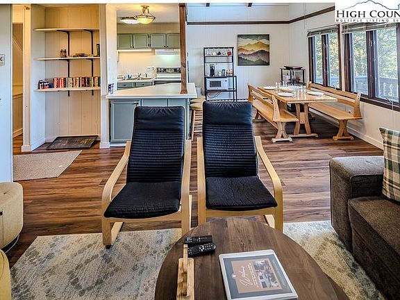 Elevation - 4,846 feet - COOL Summers. RENOVATED Three Bedroom townhouse type Condominium. LEVEL entry to main level with spacious Great Room & stone wood burning fireplace, full bath, dining, kitchen and view Deck. Upper Level : loft bedroom. Lower level - two large bedrooms, full bath, Laundry & patio. Bright decor. VIRTUAL TOUR & FLOORPLAN online. Fully furnished. Beech Mountain Club membership available. Central high elevation location.