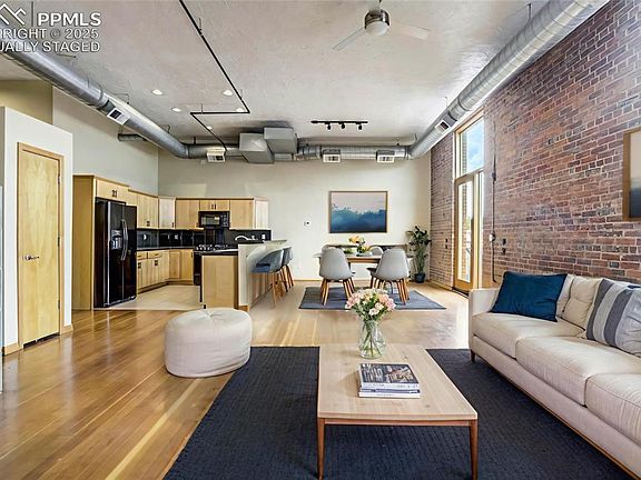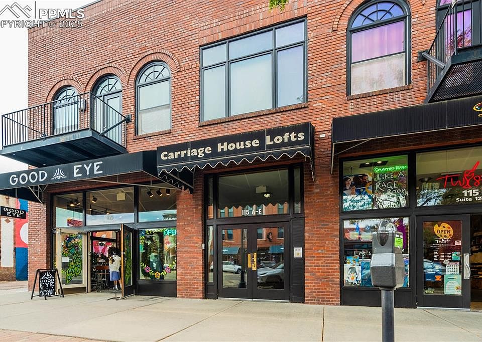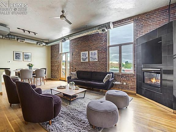 Welcome to your urban retreat in the heart of downtown Colorado Springs! Surrounded by shops, restaurants, coffee houses, brew pubs, and nightlife, this loft puts you right in the middle of it all. It’s perfect for those who want to embrace the energy and convenience of city living. Set in a beautifully preserved turn-of-the-century historic building, this loft blends old-world charm with modern comfort. Exposed brick walls, original fir wood floors, and soaring 12’ ceilings create a warm, inviting vibe, while the open floor plan enhances the spacious feel. A unique glass block wall separates the bedroom area, adding both character and light. The living room features a cozy gas fireplace, and the kitchen is designed for both function and style with maple cabinetry, granite tile counters, a gas range, and a breakfast bar—ideal for entertaining. Step outside onto your private balcony to enjoy stunning city and mountain views. The bathroom offers both luxury and practicality with a stand-alone shower and separate soaking tub. This loft also includes a laundry with a stacked washer & dryer in the loft, a large private storage room on the other side of the hallway, and a designated covered parking space behind the building—great features for downtown living! The loft is located on second/top floor of the building in the Carriage House Lofts. There is convenient access from the main entrance on Tejon Street or the rear entrance from the parking area with an elevator that makes coming and going in from your car a breeze. Historic charm, modern amenities, and an unbeatable location, this loft is downtown living at its finest.