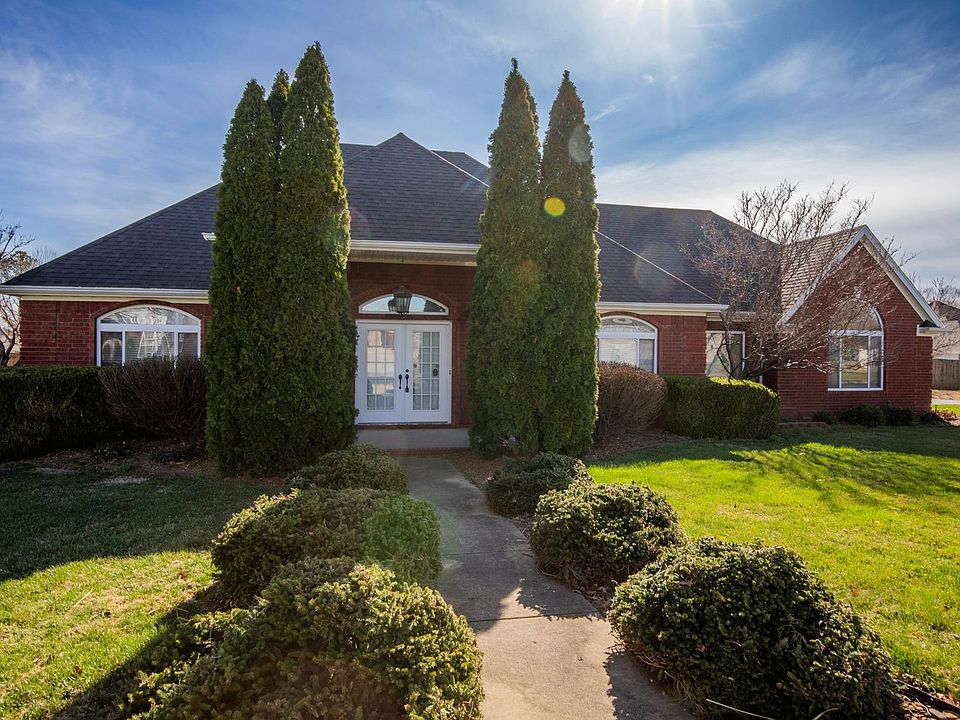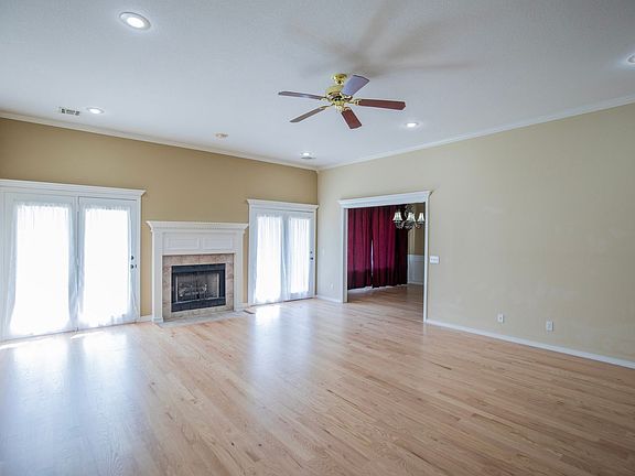 Great 4 bedroom 3 bath home just minutes from Bike trails, and schools. Living room has gas fire place, crown molding, double french doors to back yard and new wood floors that continue into the large dining area. Dining area opens into kitchen that features granite counters, stainless appliances and includes refrigerator and over range microwave. Master suite includes double sinks, separate shower and large soaking tub and large walk in closet. 3 bedrooms on main level and 1 additional bed and bath upstairs. Large covered patio area, fenced yard and storage building.